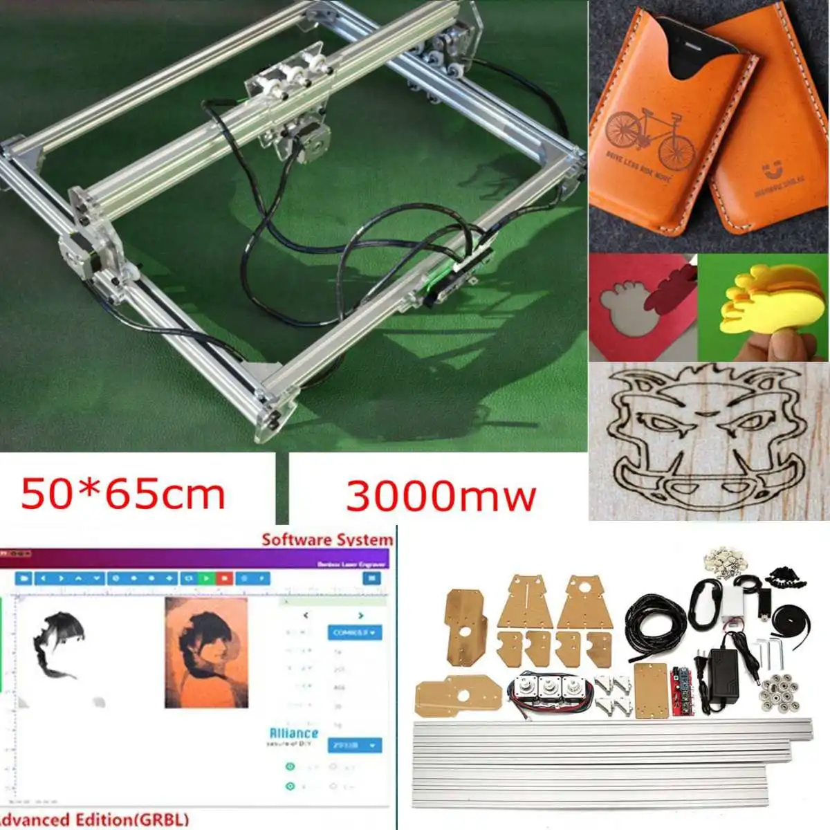 New 50*65cm Mini 3000MW Blue Laser Engraving Engraver Machine DC 12V DIY Desktop Wood Cutter/Printer/Po